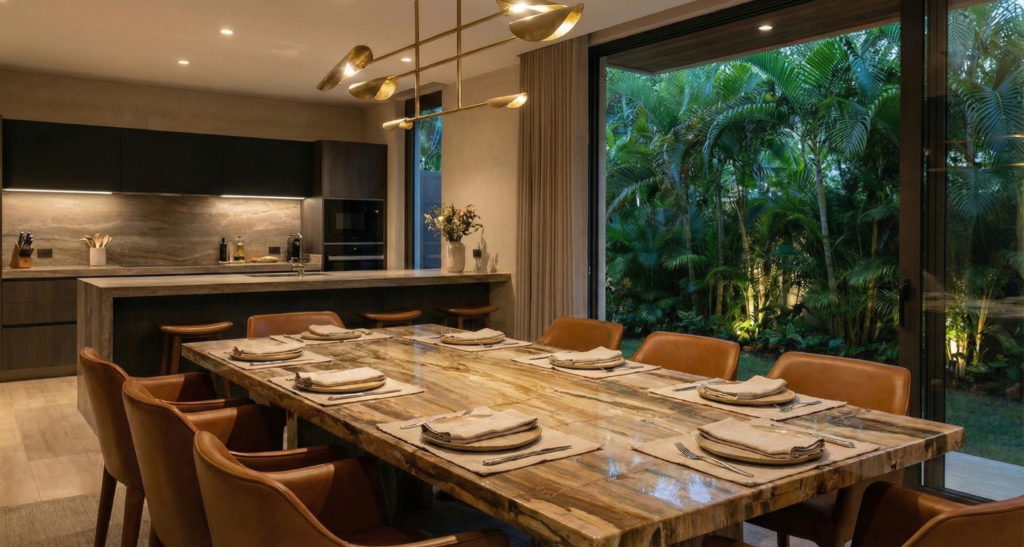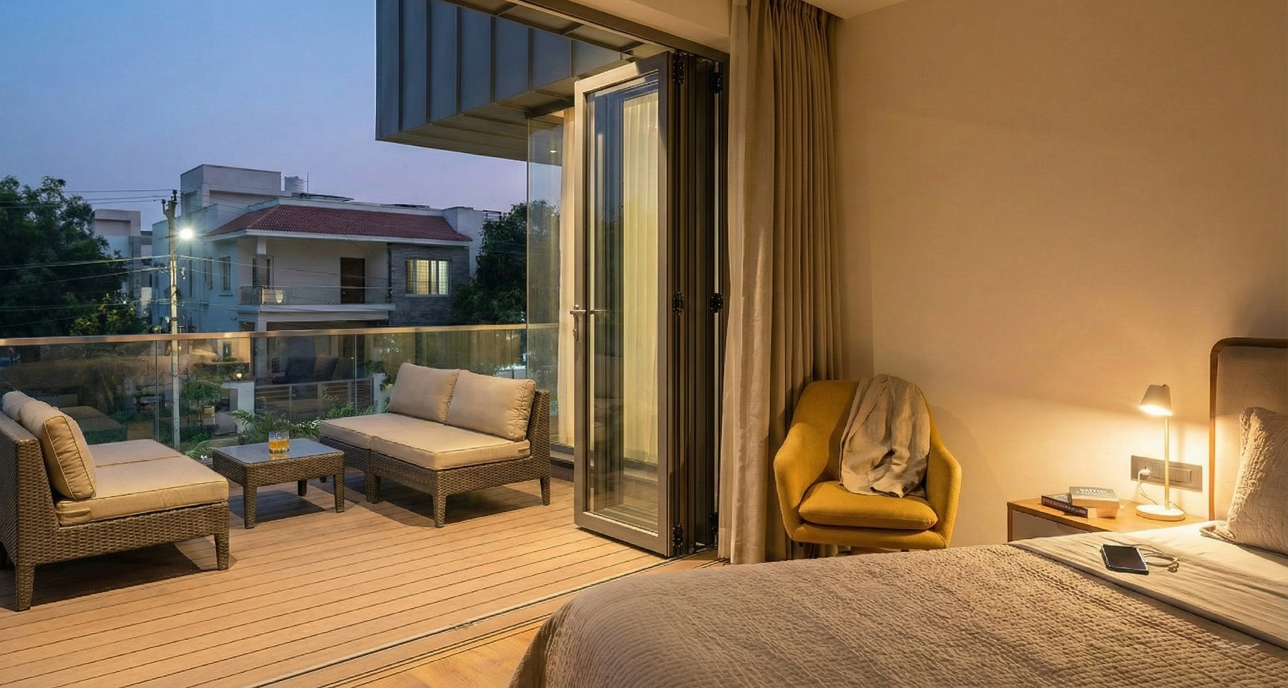 - Transparency & Light: Extensive use of glass in balustrades, wardrobe cabinetry, and folding doors ensures light propagation and visual continuity throughout the home.
