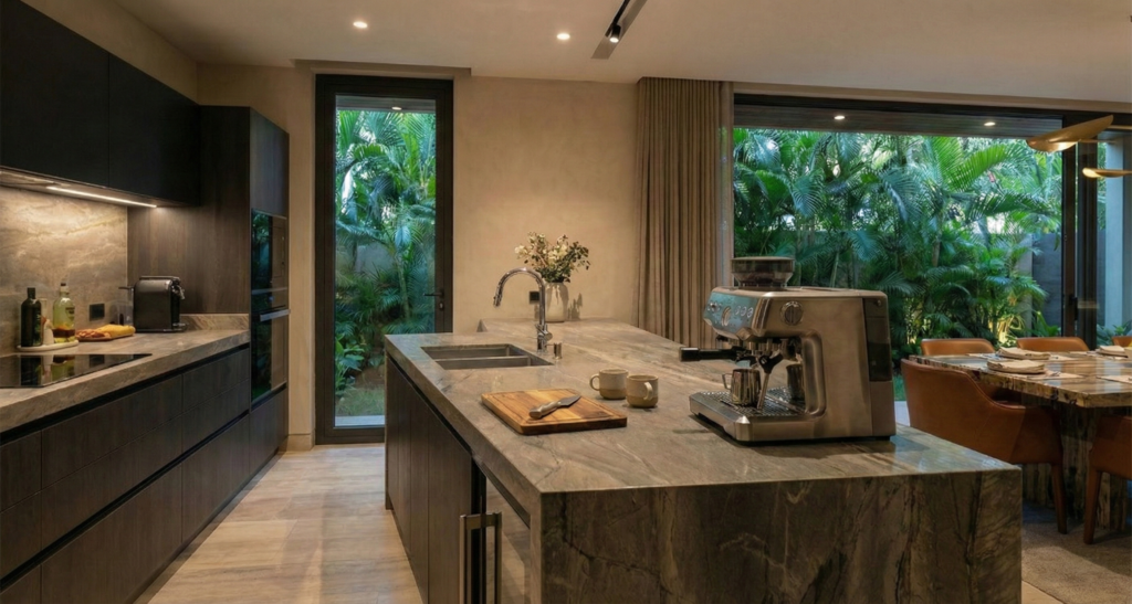 - Landscape Integration: Ground floor spaces, including the kitchen and guest bedroom, feature direct, barrier-free access to lush boundary gardens.