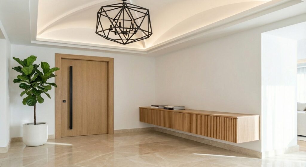 - Entrance/Foyer: Featuring vaulted ceiling detail and floating console.