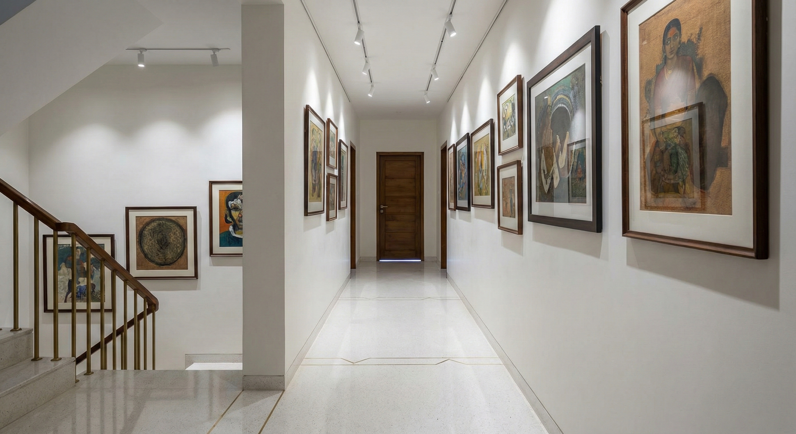 • Exposed Structure: The staircase features exposed concrete walls and floating wooden treads, celebrating the structural honesty of the home.