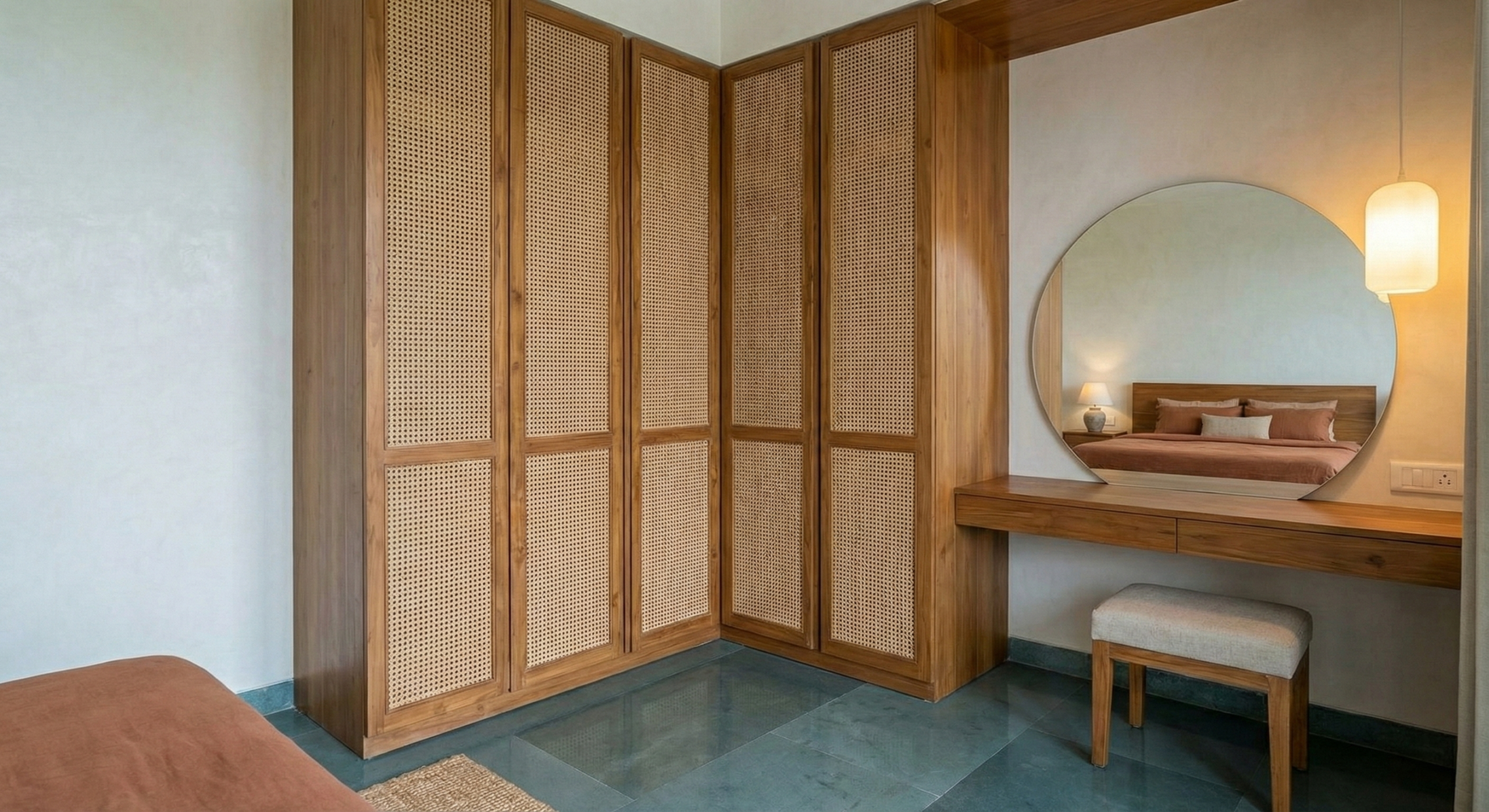 • Craftsmanship: Extensive use of traditional cane (rattan) weaving in wardrobes and furniture adds a layer of tropical nostalgia and artisanal warmth.